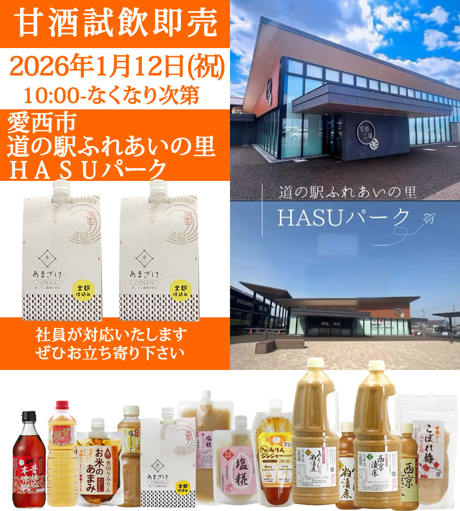 甘酒試飲即売のご案内-2026年1月12日(祝) 愛西市 道の駅「ふれあいの里 HASUパーク」