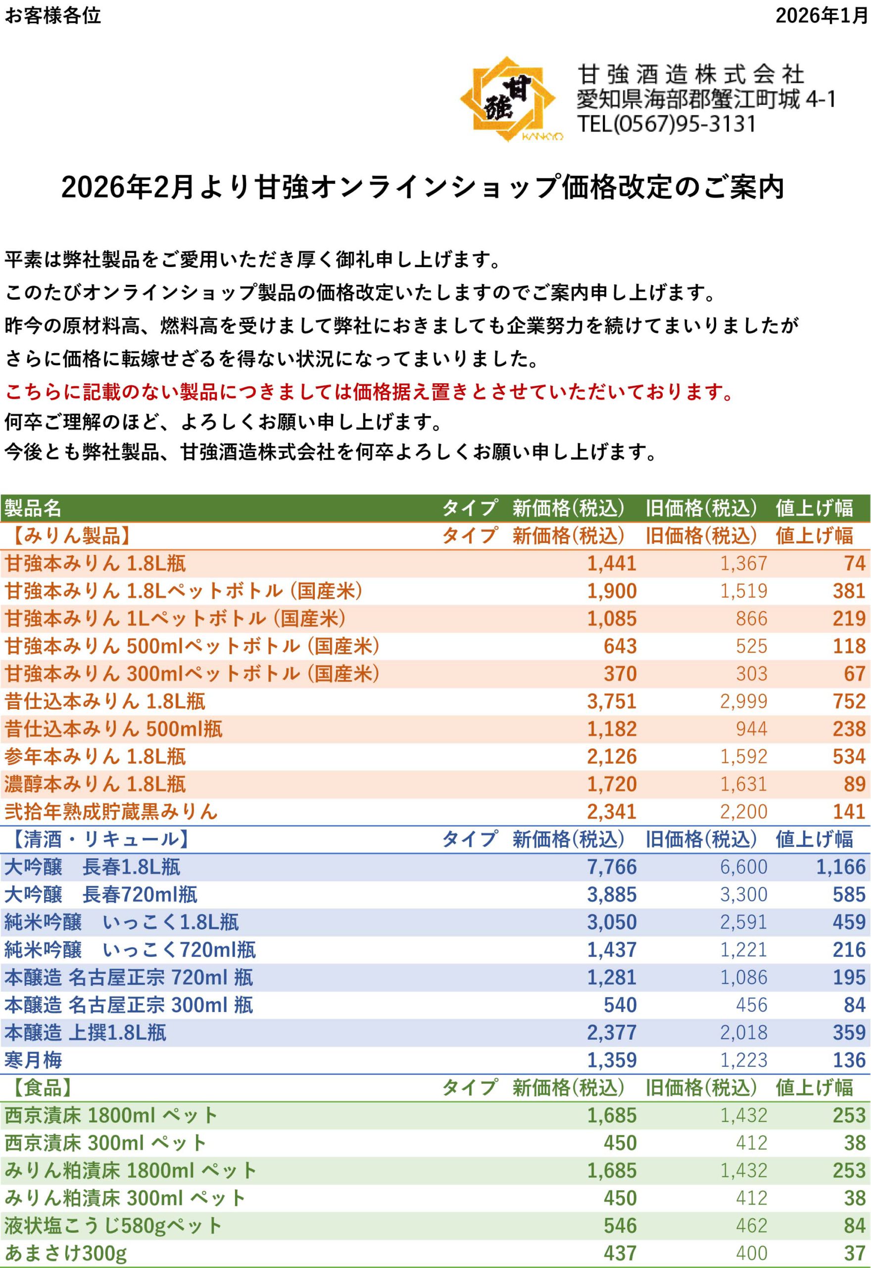 今後とも弊社製品、甘強酒造株式会社を何卒よろしくお願い申し上げます。