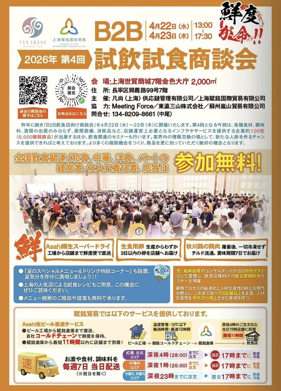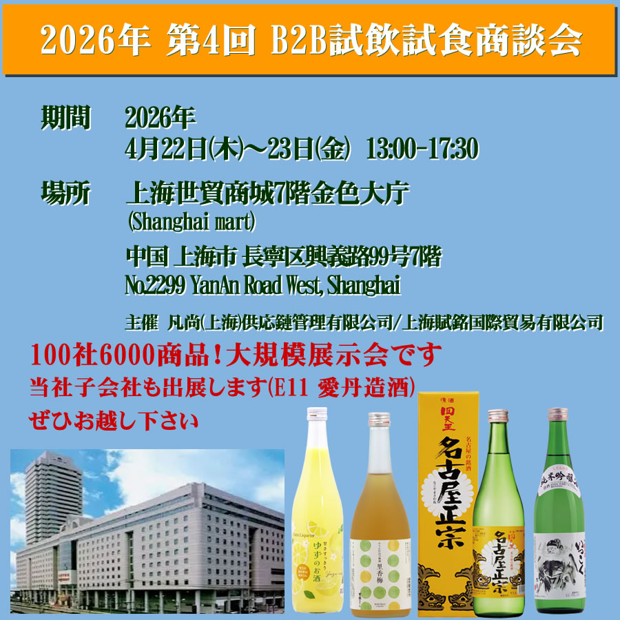 4/22-23 中国 上海展示会に出展します(2026年第4回 B2B試飲試食商談会 )
